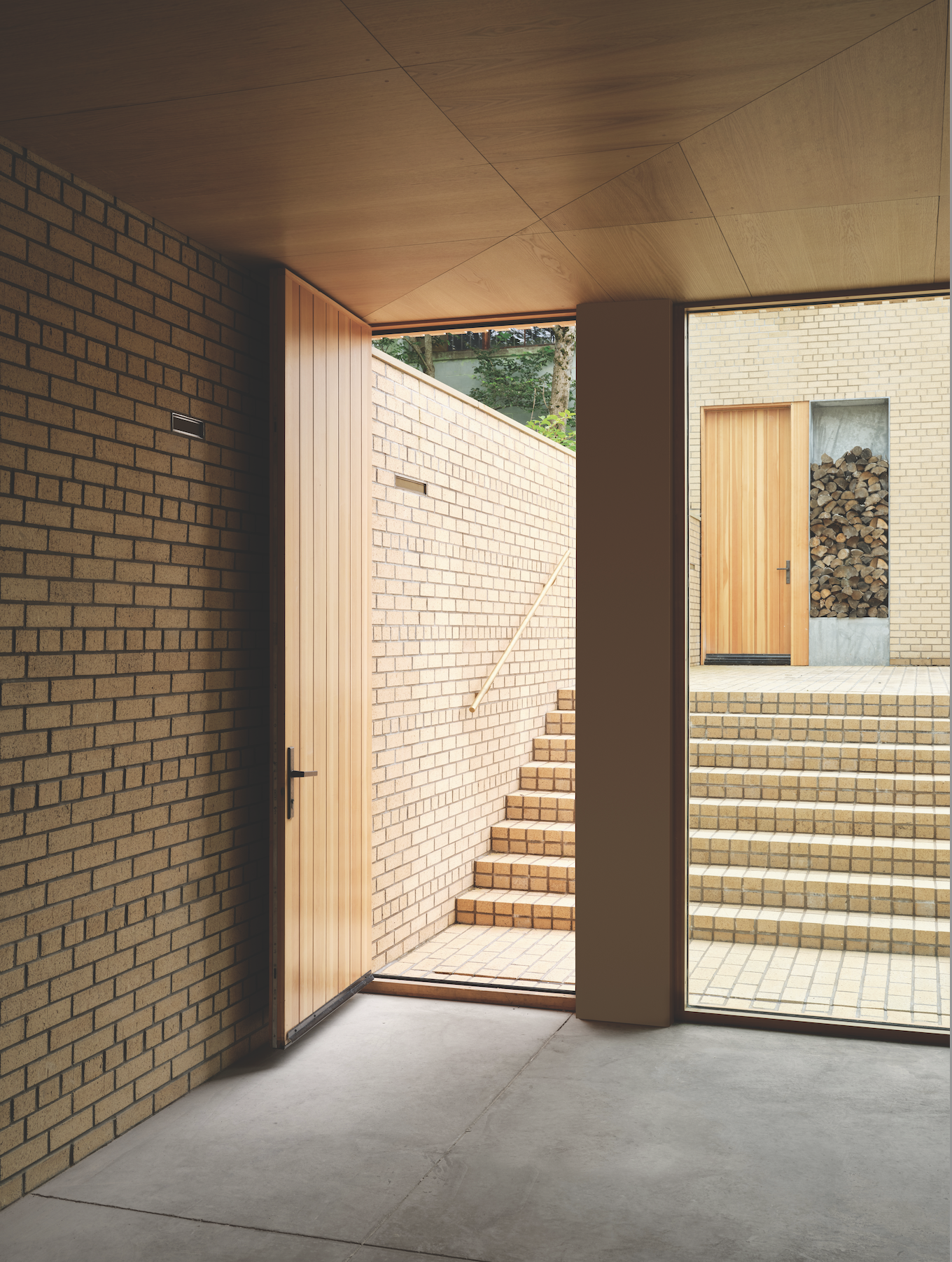 While the ground floor prioritizes community, the second level of the house is for the trio; a place for them to gather across the kitchen, living room and dining rooms. A clever use of space, like lightwells that allow sunlight to pour down multiple levels of the home, and what Gandhi describes as a “wood veil” over the kitchen area, bring natural light into the home while maintaining privacy from street level. The third and final floor has two bedrooms and two bathrooms. When designing Adrian’s room, Gandhi was limited by window placement, due to fire regulations, so he opted to create a window with a built-in desk that overlooks the lightwell.